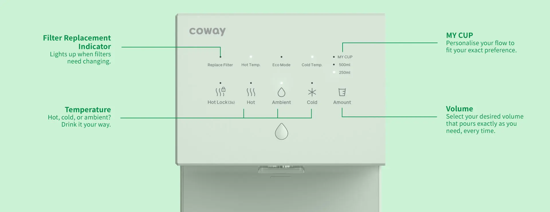 Coway NeoN fulfils your thirst in an instant, with just one tap.